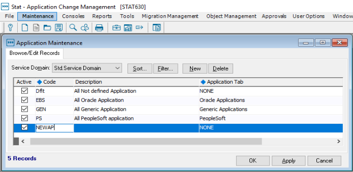 6. Enter the Application Code, Description and select Generic Applications in the Application Tab column if you are configuring for Generic Apps.