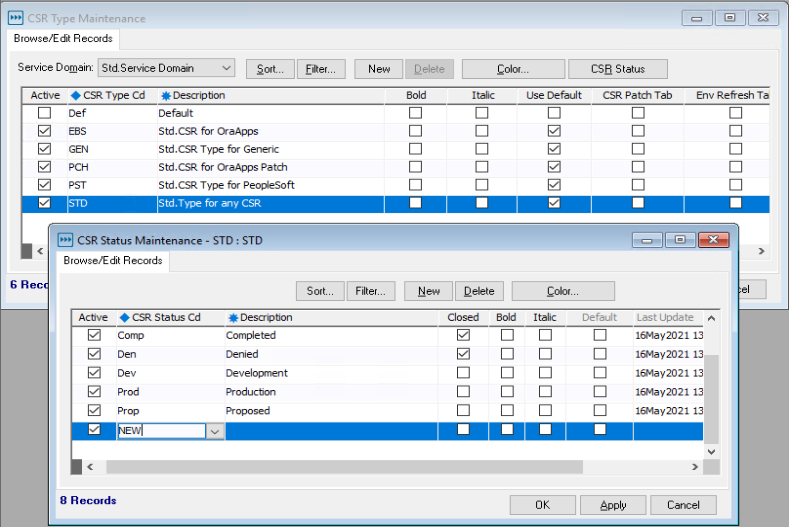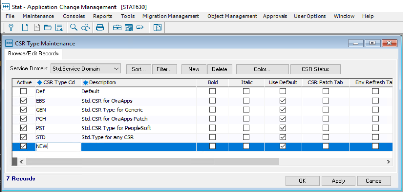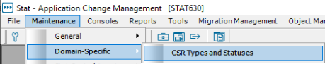 7. Go to Maintenance | Domain Specific | CSR Types and Statuses.