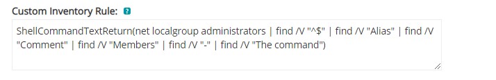 To create the Customer Inventory Field where the administrators list will be stored, the Knowledge Base Article "Use a custom inventory rule to report on non-inventoried items in Windows (152057)".