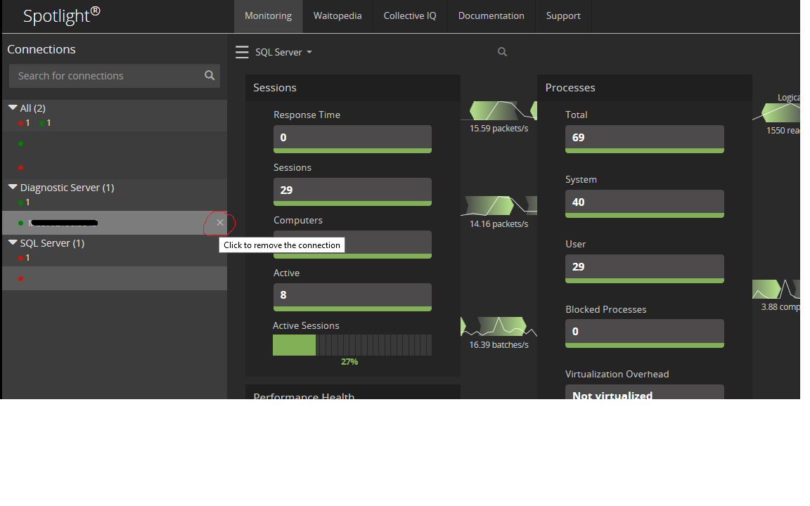 How to remove a Diagnostic Server and its connections from Spotlight Essentials website?