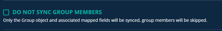 If the Do Not Sync Group Members setting is enabled, the member attributes of the group will not be synchronized. Only the group object itself is synced, without any of its members.