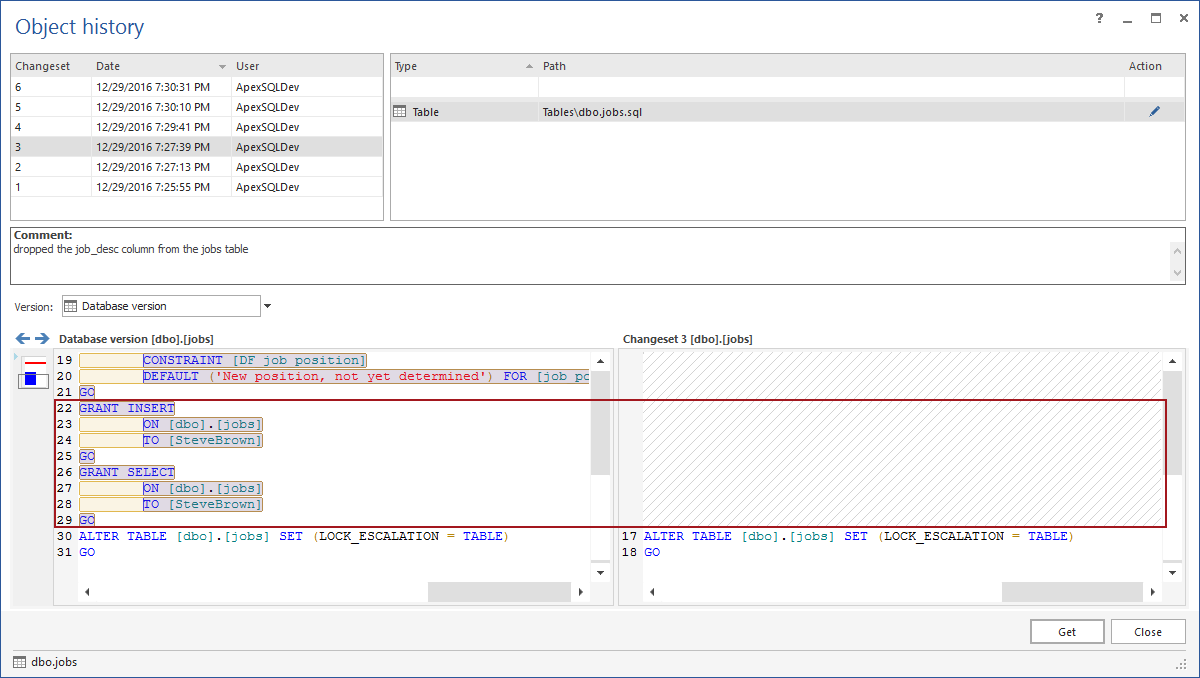 How to see the full version history of a SQL Server database object under source control and, if needed, revert changes (4210873)