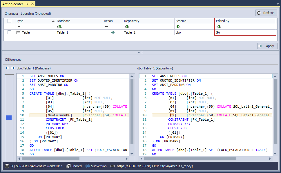 Using SQL source control to track database changes (4213380)