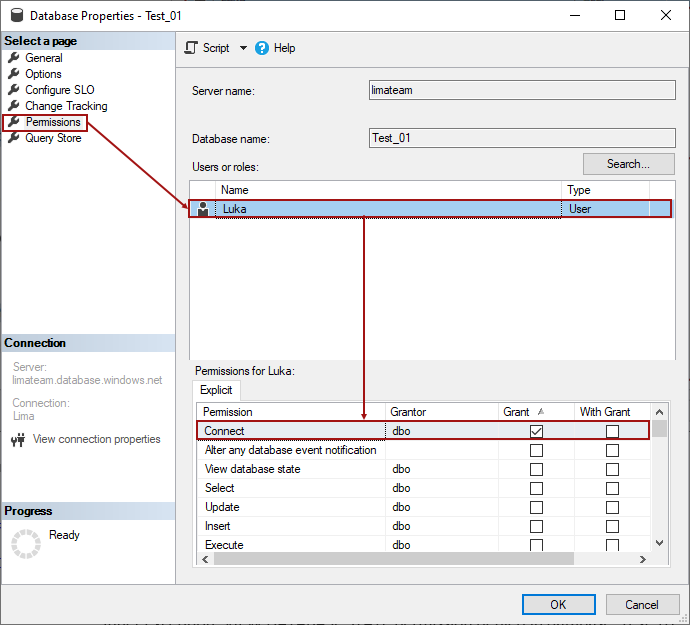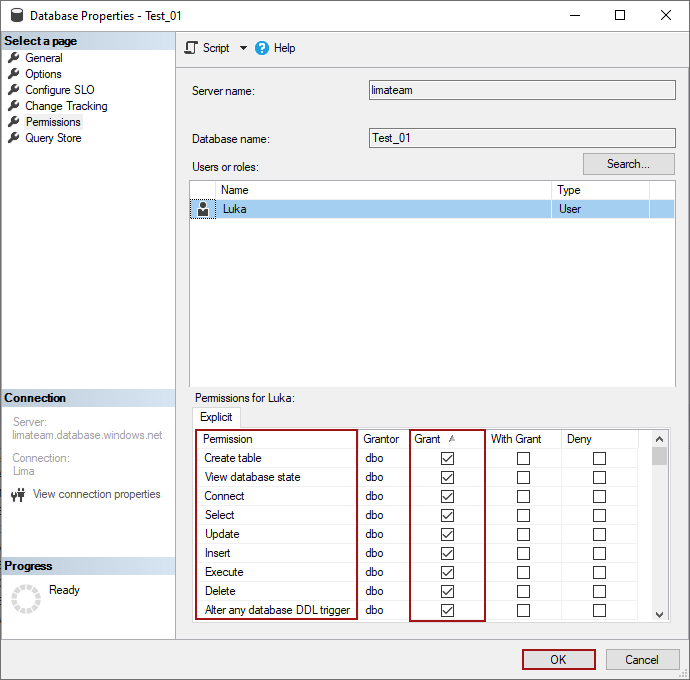 Minimal permissions for Azure SQL Database in database source control (4241106)