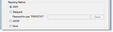 • AWR—If this option is selected, Benchmark Factory uses the optional Oracle Enterprise Manager (OEM) “Diagnostic Pack” Automatic Workload Repository (AWR) to collect database wide performance statistics, collect before and after workload capture, replay AWR snapshots of database-wide performance statistics, and generate a differences report between the capture and replay results.