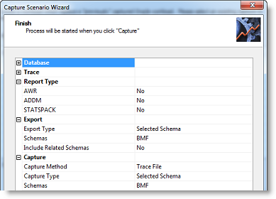 18. Start the capture. The Finish page provides capture specifications. To start the capture (or enable the schedule), click Capture.