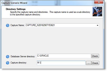 Specify an Oracle server-side directory where Benchmark Factory should place the capture files. Specify the path as the server sees it.