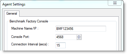 3. In Machine Name/IP field, enter the address of the Benchmark Factory console machine. In the Console Port field, enter the port for the Benchmark Factory console.