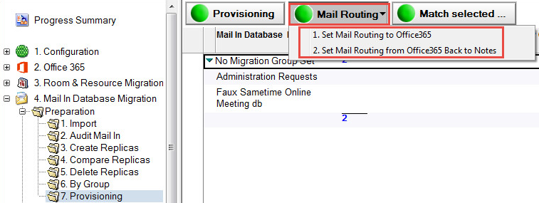 1. Click the Mail Routing button to set mail routing to Exchange; the Set Mail Routing Back to Notes option is for rolling back if needed