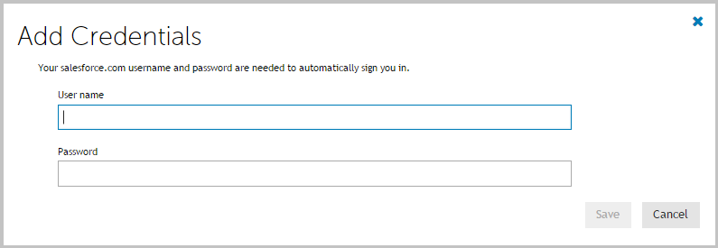 Log in to the Cloud Access Manager Portal and click the application. When a user first accesses an application configured for proxy-less form fill they are presented with a pop-up to enter their login credentials. Cloud Access Manager will then pass the credentials to the application's target URL and store them in the user's Password Wallet for future access.