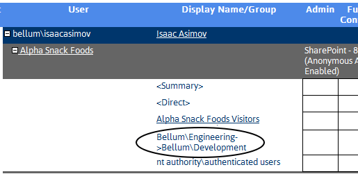 ControlPoint Application Administrators can, however, choose to have the entire group hierarchy (that is, the path to any subgroup of which the user is a member) display in analysis results by changing the Show Nested Active Directory Groups Value from False to True.