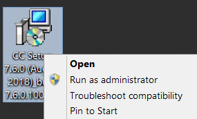 Select the erwin DT Setup file and execute it. Please, note that this has to be run as Administrator: