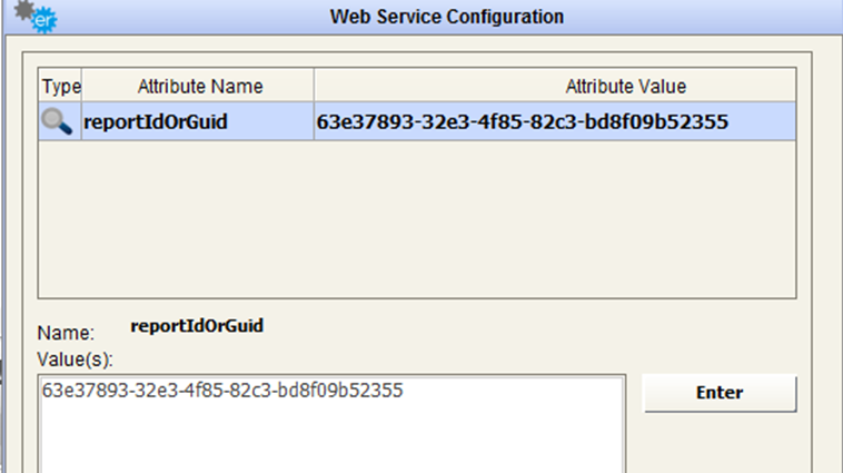 Select and apply the selection, and the desired report GUID fills the parameter value: