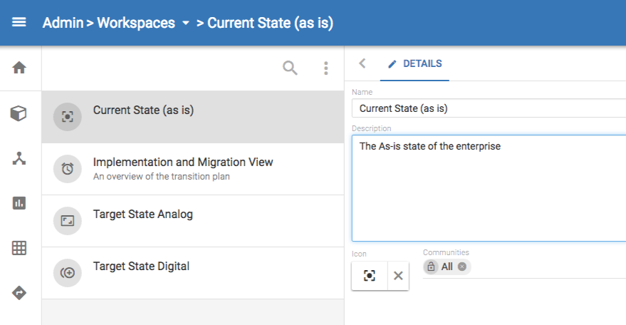TIP: It is good practice to create a separate workspace that contains overall transition plan models. |