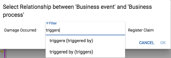 Choose the relationship type for this line symbol, you can type to search for the name of the relationship you wish to use.