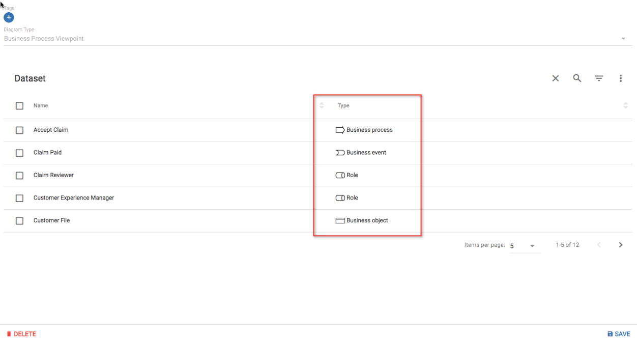 Multiple types can be added using the Search function, each type will be shown in the 'Dataset' section.