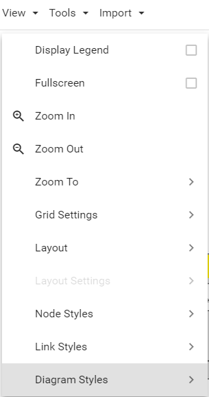 If multiple node symbols have been selected, the Layout Settings submenu provides Align Selected Nodes By and Space Selected Nodes options.