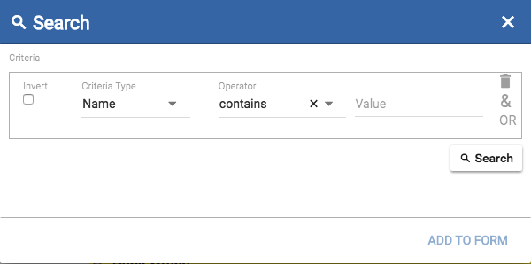 To modify the diagram contents, users can use the search function to create queries and find objects within the model - these can be simple, such as 'Name contains claim', or be more complex with multiple query rules defining the dataset the user is looking for. Multiple searches can be performed to complete the dataset.