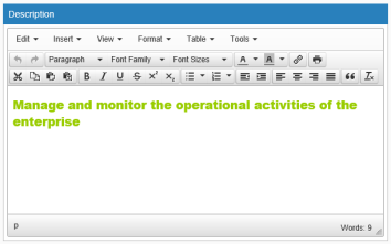 The Text Editor incorporates an HTML content editor to provide rich text formatting options for multi-line descriptive fields. The Text Editor option is only available for the Memotext Property Type with the Enhanced Multi-line Text Control setting enabled on the Property Type Page.