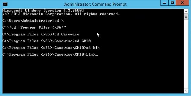 1.Run Command Prompt as an administrator and navigate to the 'bin' directory where CW Suite is installed.