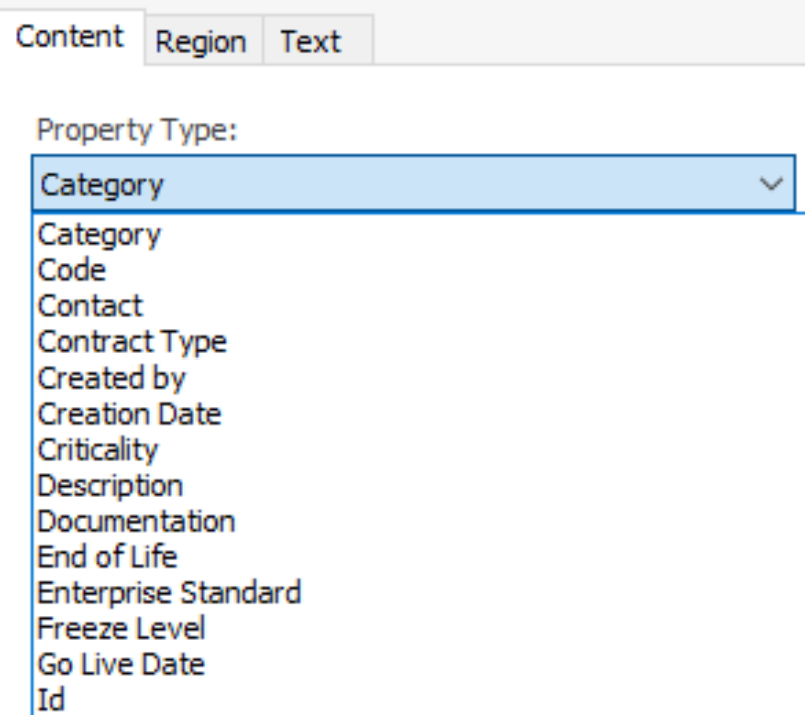 8. Click the Region Type drop-down list box and select the Property Value.