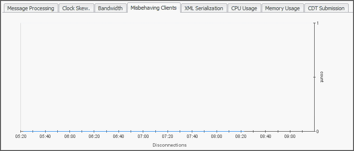 The Misbehaving Clients tab displays the disconnections per count for a selected Agent Manager instance.