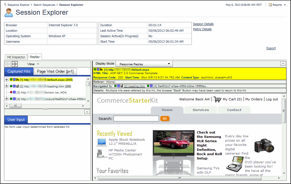 In the Search Sequences dashboard, select a sequence to investigate and click its Session Explorer |
