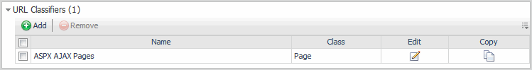 To classify URLs, navigate to APM > Configure > Traffic Analysis, select Advanced Options, and expand URL Classifiers.