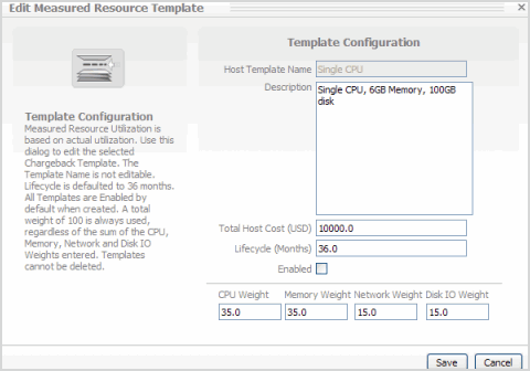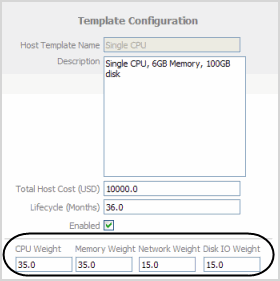 Disk IO Weight—percentage of disk IO weight used in the chargeback calculation. |