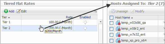 Tiered Flat Rate At A Glance—this view provides a visual summary of the hosts that have been assigned to tiers. |