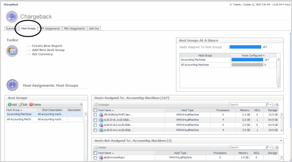 Add New Host Groups—allows you to create host groups to tailor chargeback reports to business unit reporting needs. |