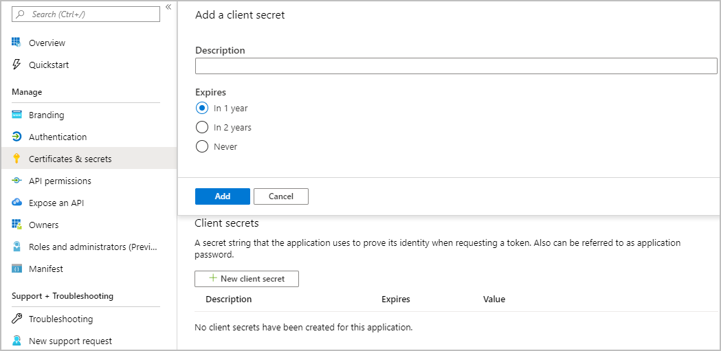 Application ID *: The value of Application ID retrieved in Getting authentication information through CLI or Getting authentication information through Azure portal. |