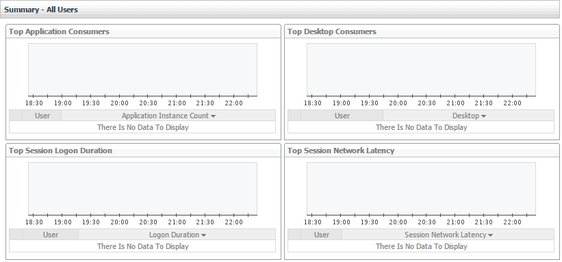 XenDesktop® facilitates delivery of application components to end users on demand. Foglight™ for Citrix XenDesktop and XenApp allows you to monitor the over utilization of resources associated with XenDesktop users. The information appearing in the XenDesktop User Quick View can help you discover potential resource-level issues that can be caused by higher than usual CPU or memory usage, or increasing latency and session rates, and to reallocate resources where they are most needed.