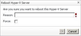 In the Reboot Hyper-V Server dialog box, in the Reason box, type the reason for rebooting the server. |