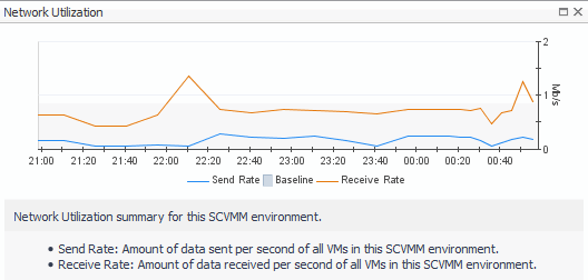 Virtual Machines. The number of the virtual machines associated with the selected SCVMM, followed by the counts of all alarms associated with those virtual machines, broken down by the alarm state (Normal, Warning, Critical, Fatal). | |