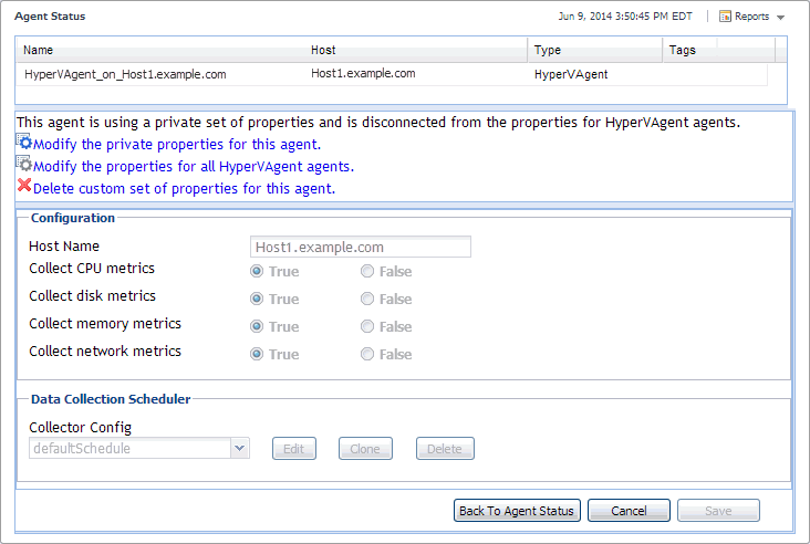 Click Modify the private properties for this agent.