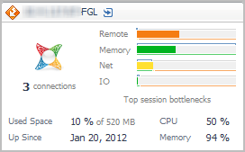 Top Session Bottlenecks. A breakdown of the potential session bottleneck points. The four top used resources from the list below are displayed on the tile.
