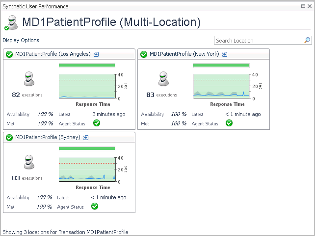 Click Synthetic Result Detail to see the script execution statistics in the End User Explorer dashboard. For more information about this dashboard, see the Foglight Transaction Player User and Reference Guide.