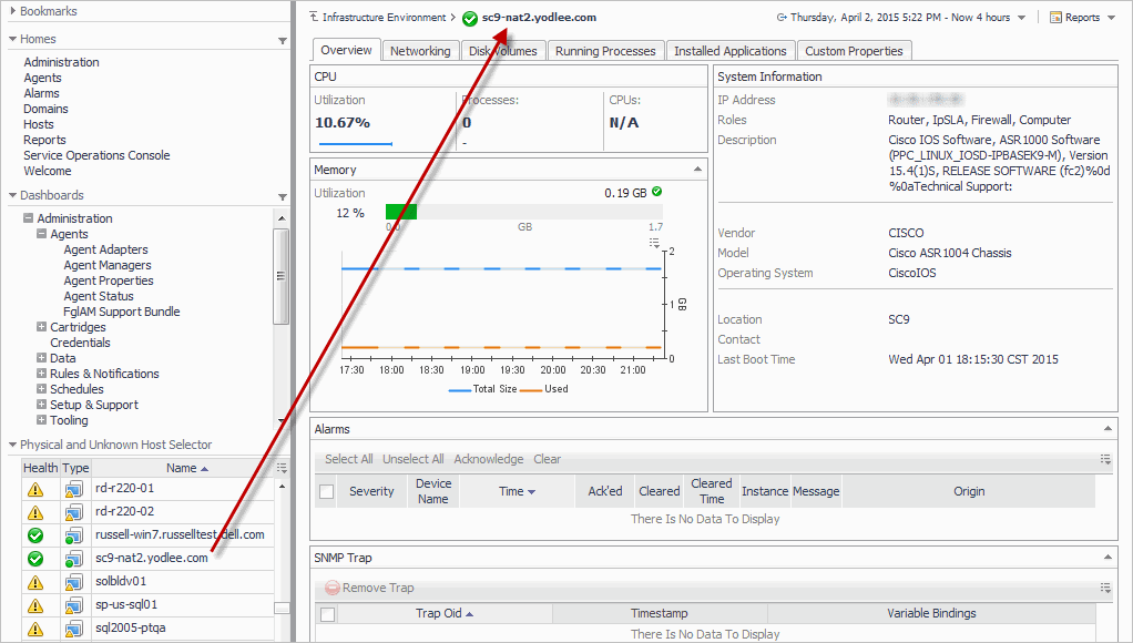 SNMP monitored hosts can be viewed from the Infrastructure Environment dashboard.