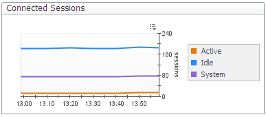 The Connected Sessions chart displays SQL Server session information. This chart contains a plot graph, which displays the number of SQL Server sessions over time.