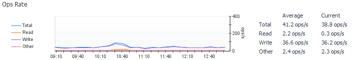 Charts. Plot values over the time period for these metrics, if available: Ops Rate, Data Rate, Latency, % Busy, Cache Hit Rate, and Average Queue Depth. |