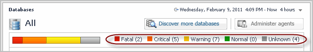 You can use other types of attributes to filter this list. For example, clicking a severity icon in a tile shows only the database instances of that database type that are in that alarm severity state. For more information about filtering this list, see Filtering the list of database instances.