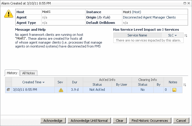 For complete information about alarms in Foglight, see the Foglight User Help.