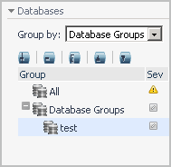To list only the database instances that belong to a specific database group, on the navigation panel, in the Databases view, expand the Database Groups node and select a group. For more information about database groups, see Managing database groups.