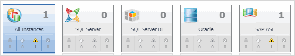 The table of database instances appearing just below the tile collection reflects the tile selection. For example, clicking the SAP ASE tile shows only the SAP ASE databases in the list.