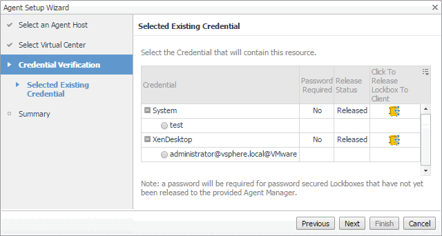 Add vCenter(s) to an existing credential: Select this option if you want to use an existing credential for the selected vCenter. This option is suitable if an existing credential has the information needed to access the vCenter. Click Next and continue to Step 9.