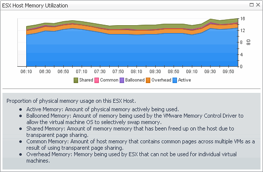 Memory Utilization: Active, Ballooned, Shared, or Swapped. Displays the Virtual Machine Memory Utilization dialog box.