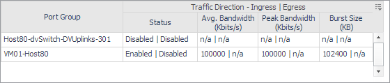 Traffic Shaping. Displays a dwell showing a list of port groups associated with the virtual switch and the related information.