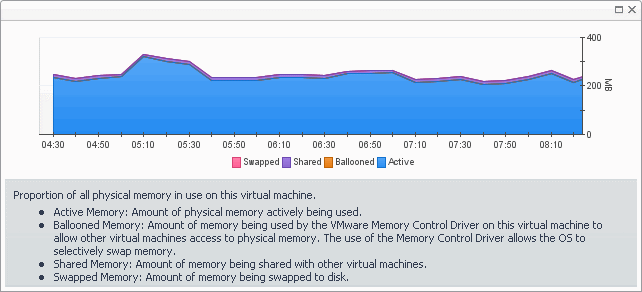 Active Memory. Displays additional information about the active memory used by each virtual machine, indicating which virtual machines are selected and have their active memory metrics showing in the graph.