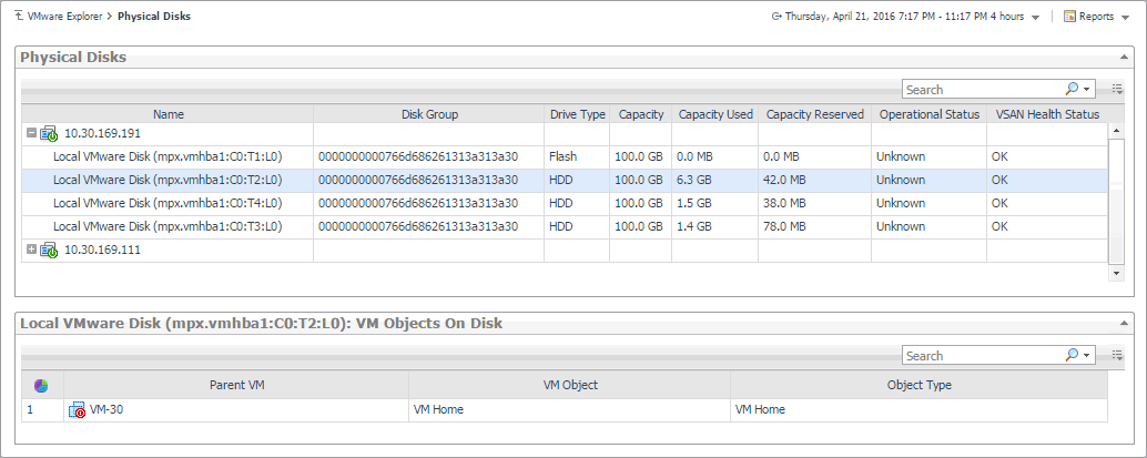 Vsan Disks (VSAN datastores only). Click Explore Physical Disks view to display the more information about physical disks.